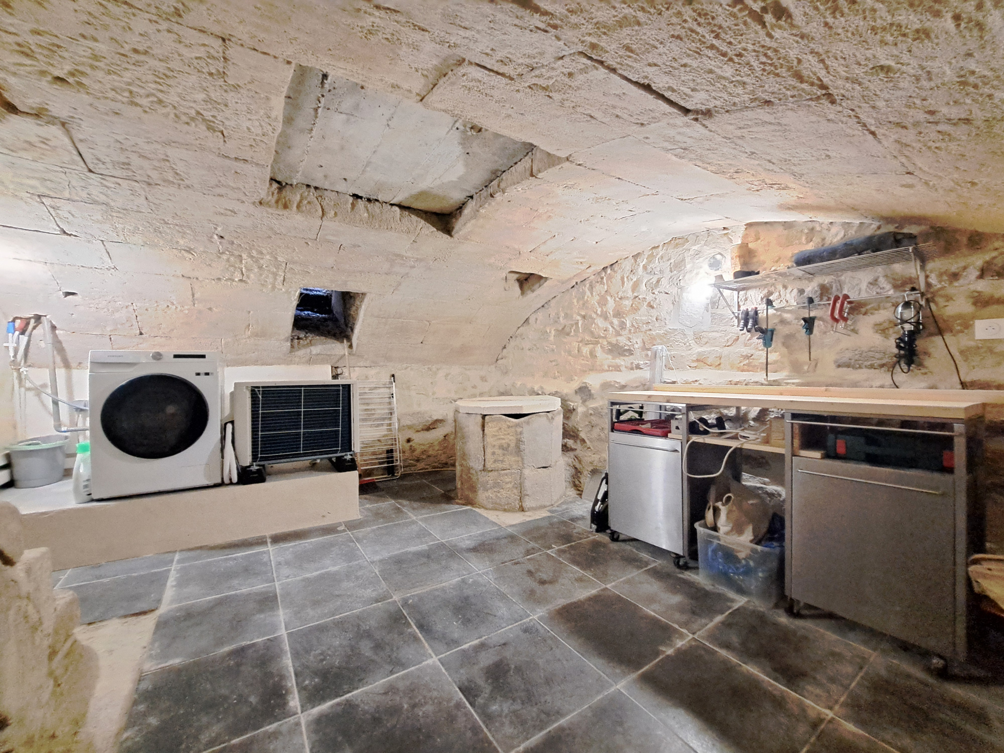 Pour plus de confort, ma jolie cave voûtée a été aménagée en atelier / buanderie.