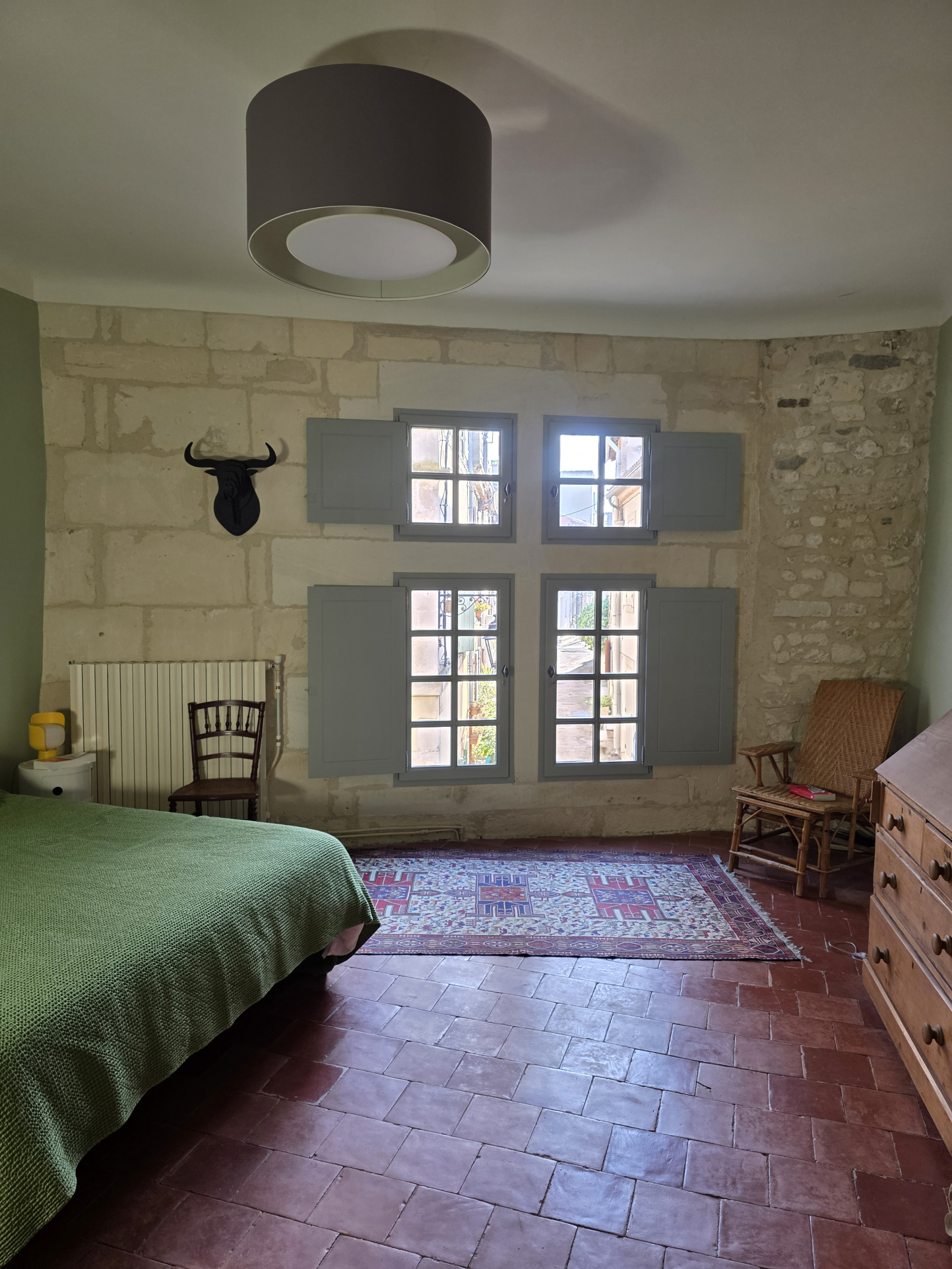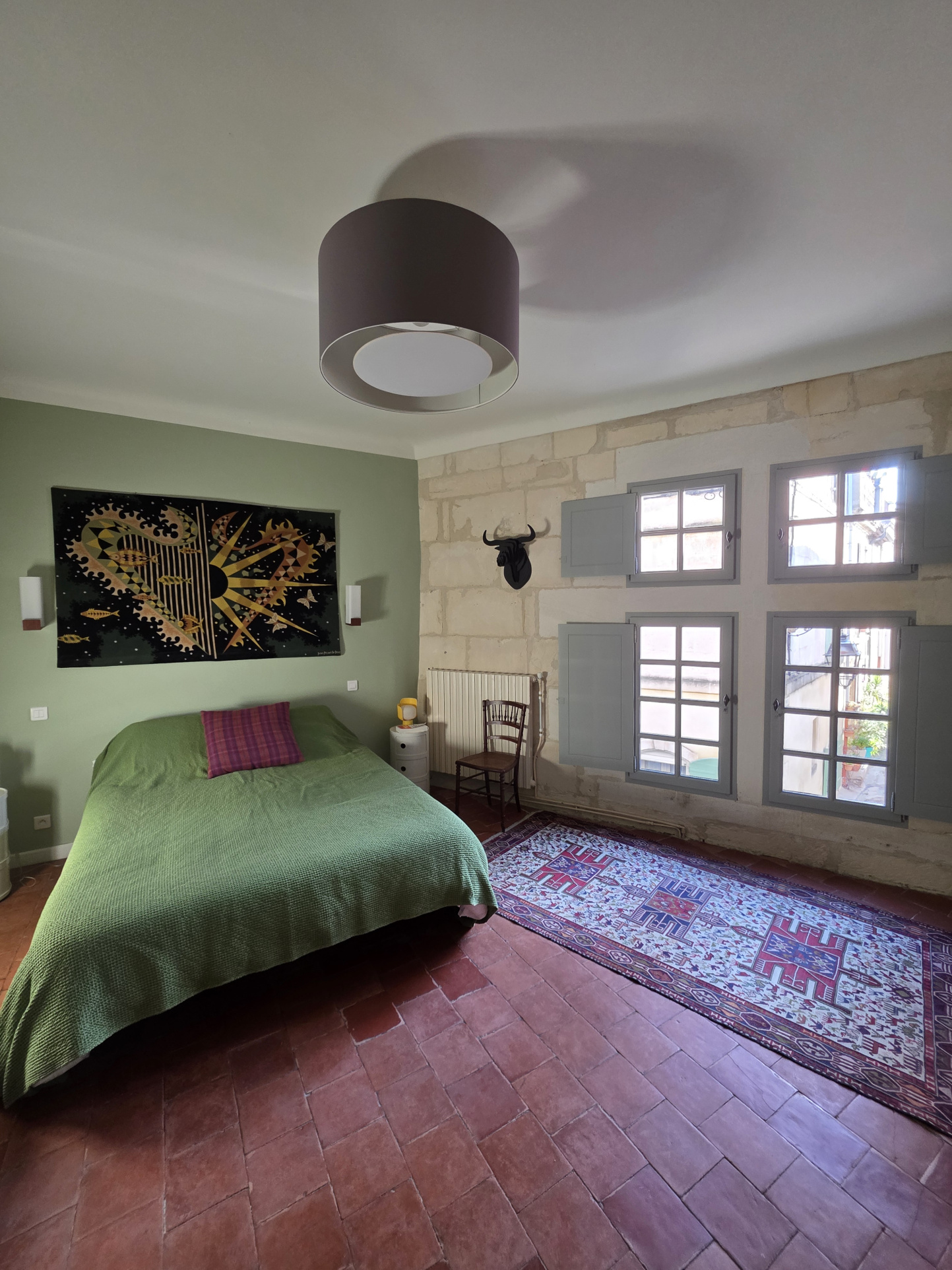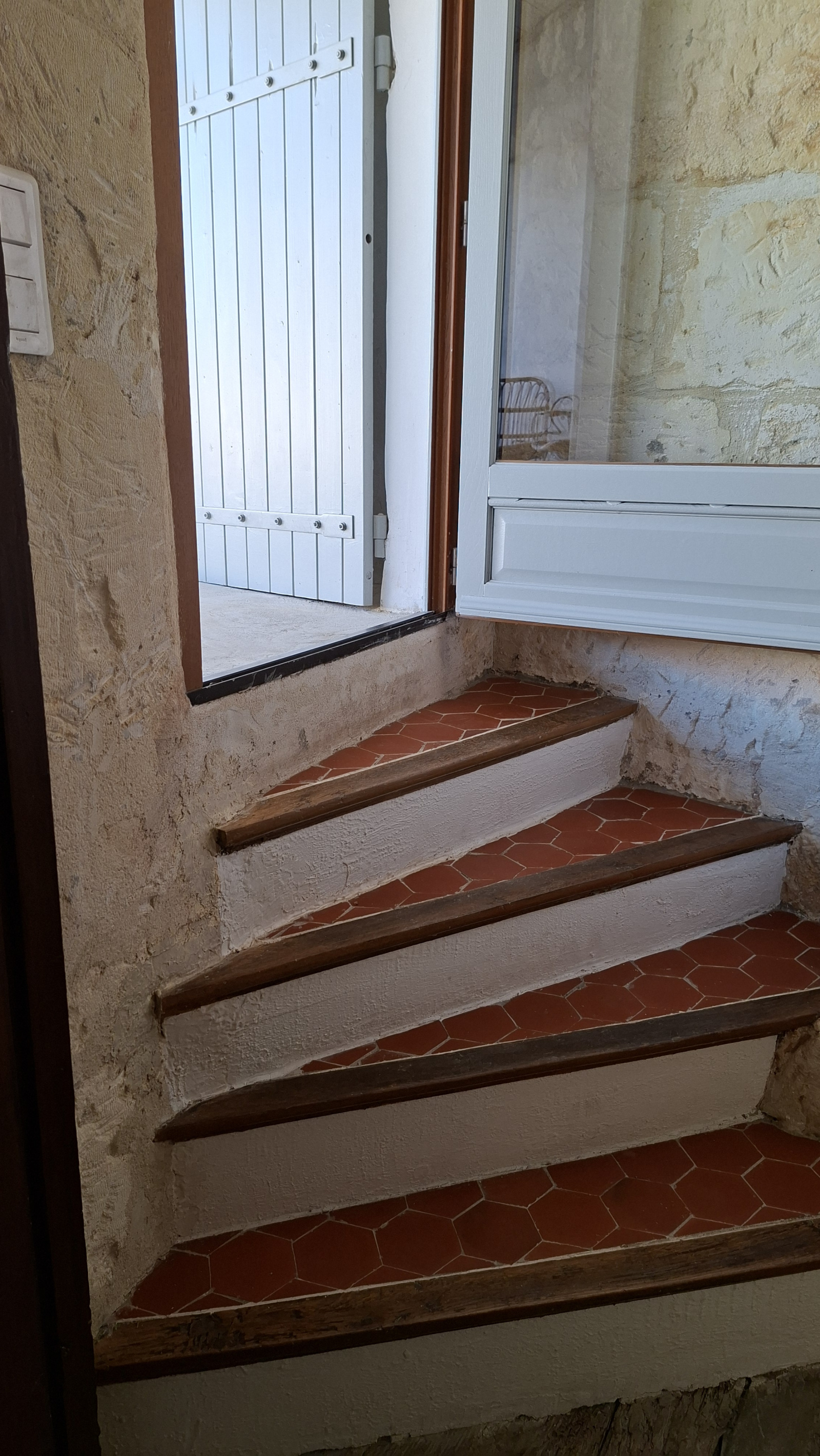 Mon charme est omniprésent et parfaitement préservé : sols en terrazzo et tommettes anciennes, murs en pierre, plafonds de caractère, fenêtres à meneaux… chaque détail témoigne de mon histoire et de mon authenticité.