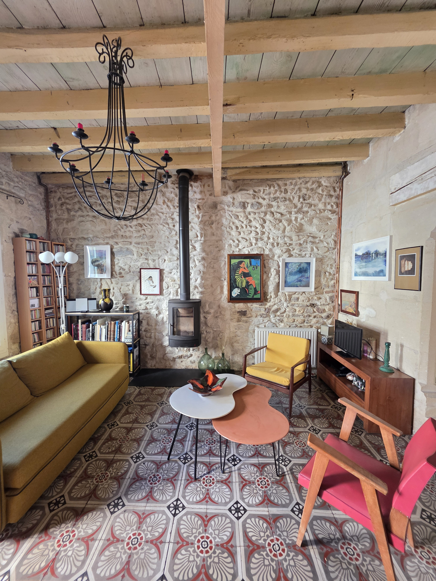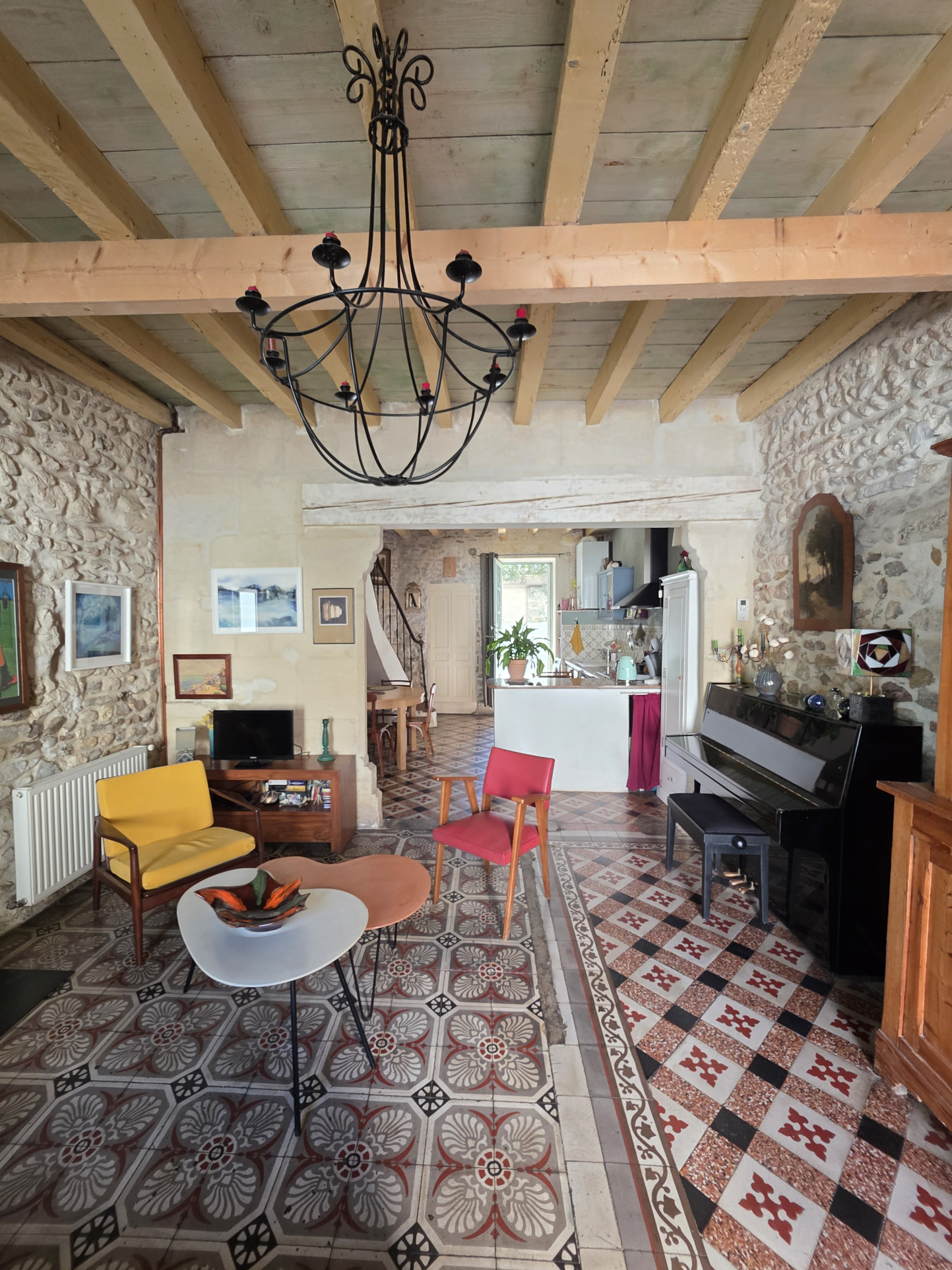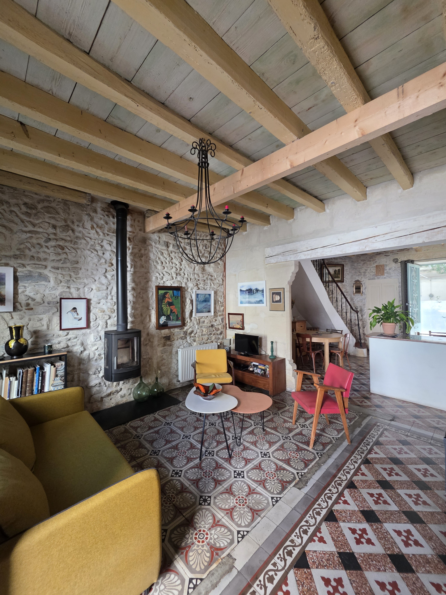 Entièrement rénovée avec goût, j'ai su préserver mon authenticité grâce à mes sols en carreaux ciment et mes mur en pierre. J'offre ainsi un parfait équilibre entre le charme de l'ancien et le confort moderne.