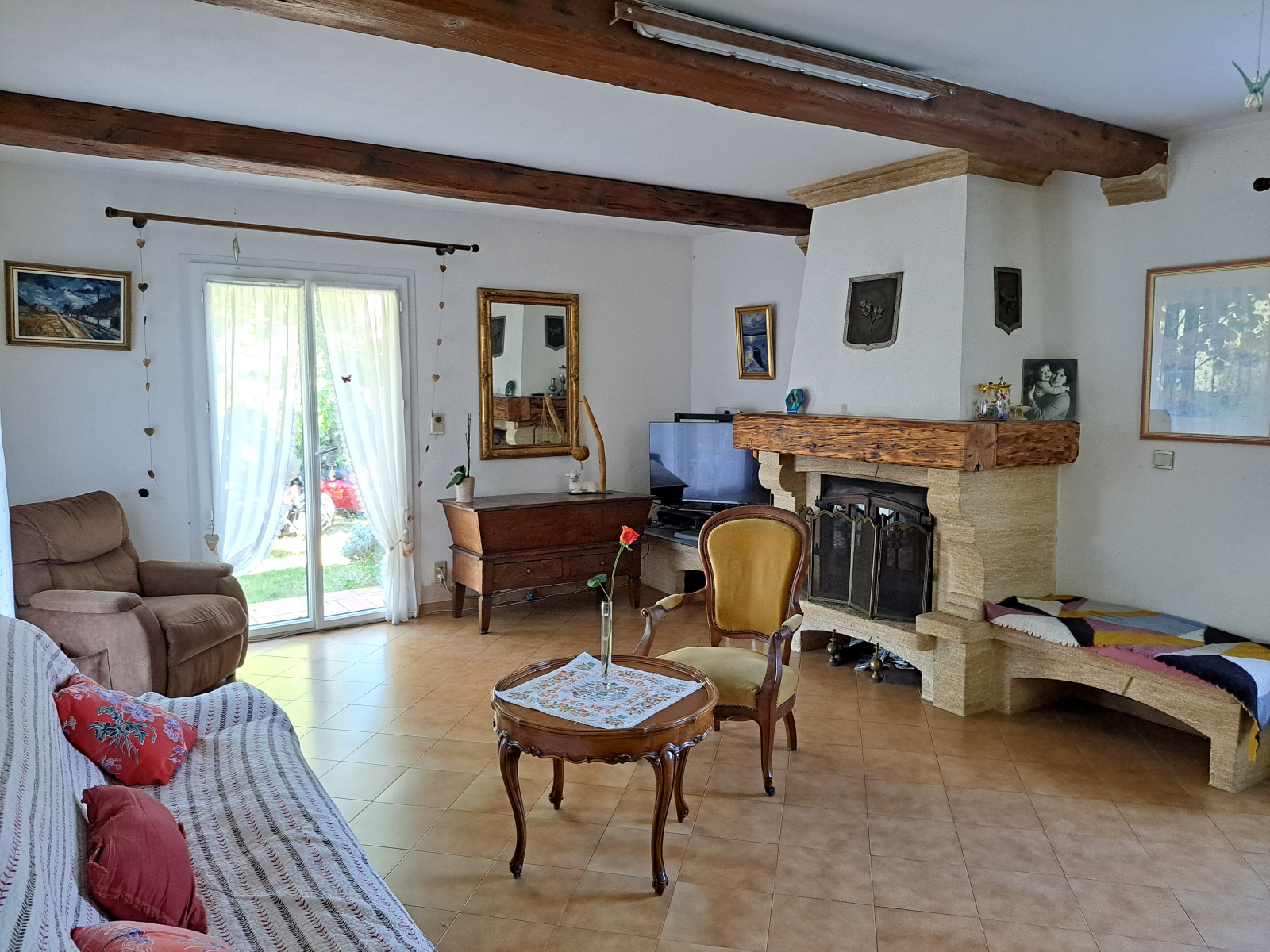 Mon rez-de-chaussée comprend une entrée, un vaste séjour de 37 m² avec cheminée, une cuisine séparée de 19 m², un bureau, une buanderie, un WC, un garage et un très agréable jardin à l'angle d'une rue très calme.